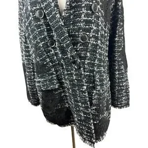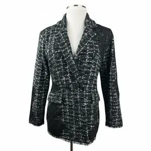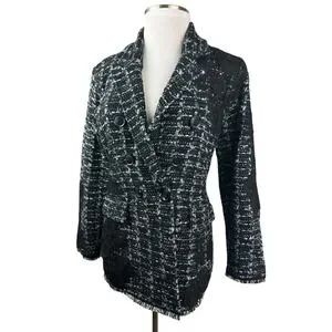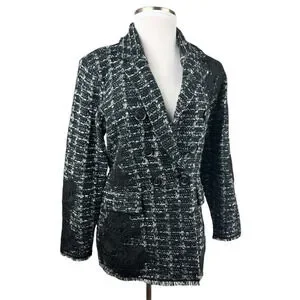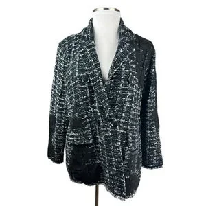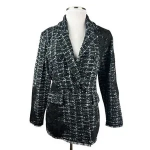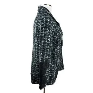 Chico's Tweed Lace Embroidered Metallic Cardigan Jacket Sweater Blazer Size 3 XL