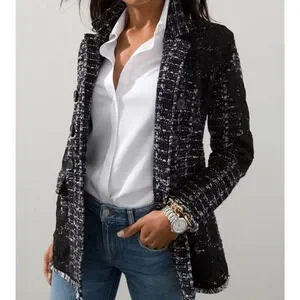 Tweed Lace Embroidered Cardigan Sweater Blazer