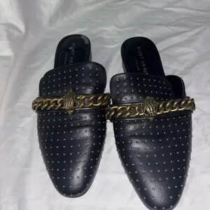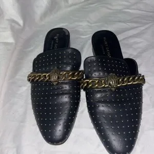 Kurt Geiger Black Mules with Gold Chain Detail 40.5