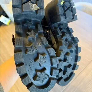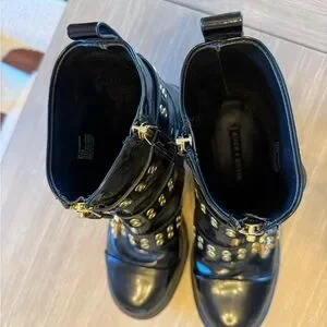 Bold black combat boots with striking gold buckles. Perfect for a fierce look. Gently worn, fits true to size.