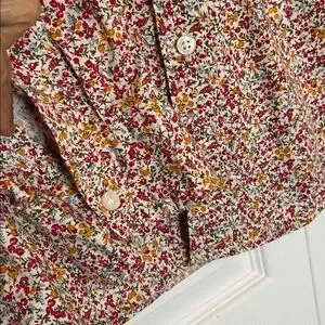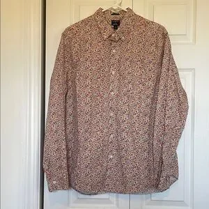 Women’s L J. Crew flex washed classic sm floral pinks reds buttton down collar long sleeve 25” pit to pit 28.5” shoulder to hem