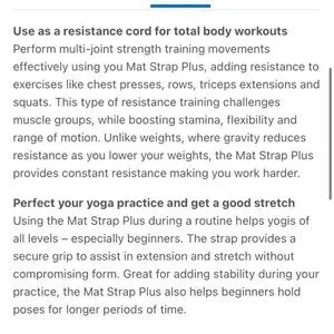 Merrithew Yoga Mat Strap Plus is our latest mat carrier that works overtime as a fitness accessory. Designed with built-in resistance tubing to use in strength training exercises. Improve your yoga practice, using the strap to assist in extensions or digging deeper into poses. Increase flexibility and circulation by stretching out sore or strained muscles.