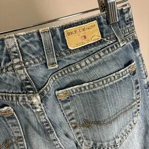 Vintage BKE Harbor Distressed Frayed 100% Cotton Long Flare Jeans Size 25 Y2K