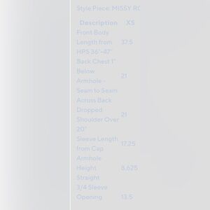 Length: missy length 37.5" to 39.5"; (see two photos with XS measurements)