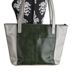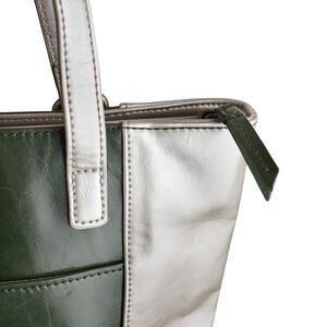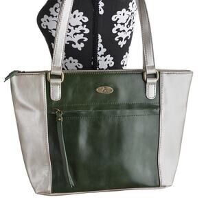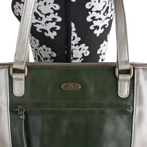 Green And Champagne Aurielle Leather Tote - 14W x 9H x 4.75D