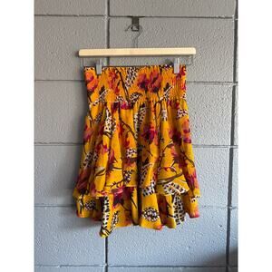 Vera Silk Skirt In Yellow Multicolor With Smocked Waist And Layered Design. Reminds me of Farm Rio design.