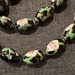 Leftover inventory from previous business. This necklace is new and has been in storage for 30+ years. Necklace measures approximately 29”. Oval egg shaped beads are 1” long.