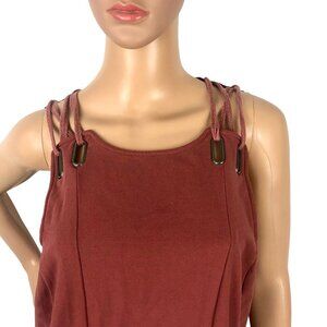 Free People Brick Red Tunic Mini Dress A-Line Sleeveless Tank Dress Size L