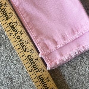 Elevate your wardrobe with these Lilly Pulitzer Calla Lilly skinny jeans in a beautiful pink hue. These jeans are a size 2 and feature ruffle, fringe, button, and zipper accents that add a touch of elegance to your outfit. The highrise waistline and skinny fit provide a flattering and comfortable look for all-day wear.