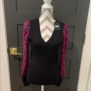 NWT DKNY Black Top with Sheer Pink Sleeves