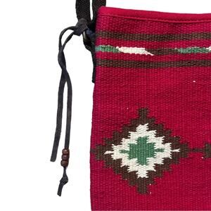 AMERICAN EAGLE Woven Red Southwestern Crossbody Messenger Bag. Leather strap, magnetic closure, cotton body. Fully lined.