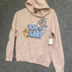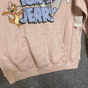 Tom & Jerry Juniors Size L 11/13 Pullover Pink Hoodie Front & Sleeve Graphic