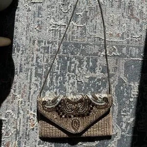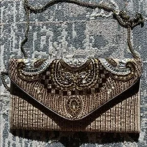 Chic beaded clutch with intricate design. Features a stylish chain strap. Perfect for evening wear. Only used once. Clean inside. Let me know if you have any questions!