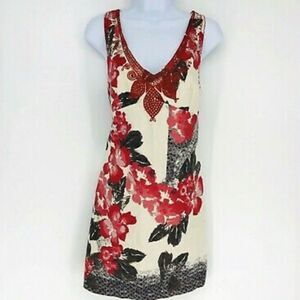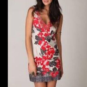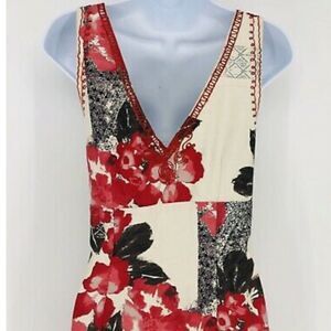 Free People Floral Print V Neck Embroidered Cotton Tank Mini Dress