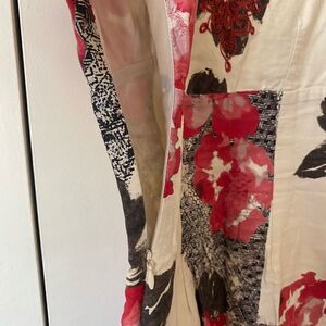 Floral Print V Neck Embroidered Cotton Tank Dress