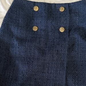 This chic navy blue skirt features stylish gold buttons, perfect for any occasion. Elevate your wardrobe with this elegant piece. Never worn!