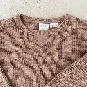 Zara mauve waffle Knit cotton Sweater and ankle Pants Set