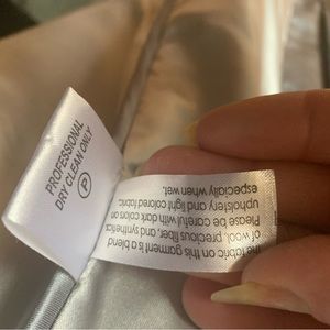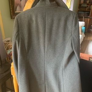 Color is light heather grey. Have had this beautiful jacket for awhile and it’s in excellent condition includes side pockets with buttons. Cute feminine collar and flattering fit.