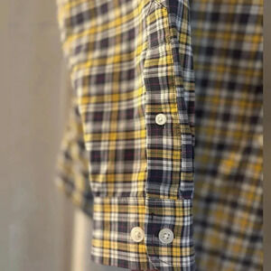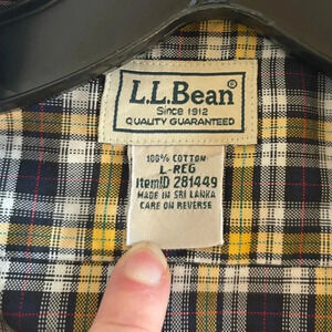 L.L. Bean Men’s Long Sleeve Size L Button-up shirt with one front pocket. Yellow,gray and white plaid. Great for Fall and Winter. 3 button cuff.