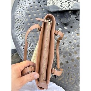 The Anne Klein Classic Pocket Tote Bag with Leather Handles is a stylish and practical handbag for women. Made with brown leather and featuring a classic tote style, this bag exudes timeless elegance. The interior includes pockets for organization, making it both fashionable and functional. The leather handles add a touch of luxury to this versatile accessory, perfect for everyday use or special occasions.