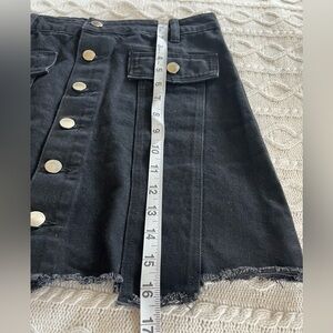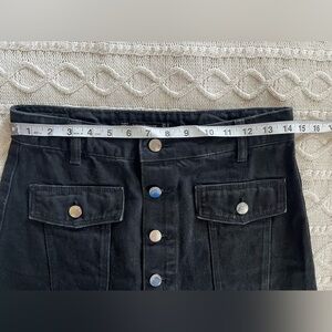 EUC excellent condition! Great quality by designer Zara. “Trafulac Denimwear” Black denim mini skirt, button down. Cotton. Frayed and asymmetrical hem. Measurements in photos. Women’s size Medium. Smoke free home