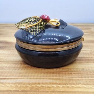 Vintage Chinese Jewelry/Trinket Box Black 4" Diameter Unique