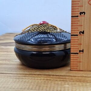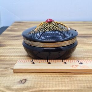 Vintage Chinese Jewelry/Trinket Box Black 4" Diameter Unique. Shipped with USPS Ground Advantage.