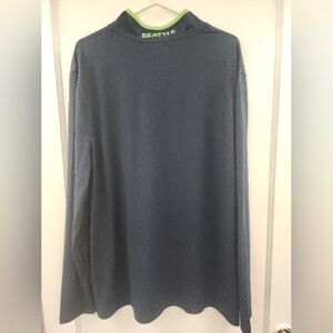 Show your team spirit with this official Seattle Seahawks half-zip pullover! This lightweight, long-sleeve sweater in size XL is perfect for game days or casual wear. Features navy blue fabric with neon green and white accents, the Seahawks logo on the chest, and a comfortable fit. Gently worn and in great condition. Perfect for any 12th Man fan!