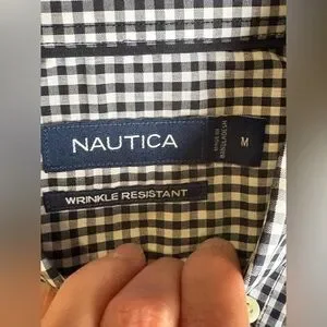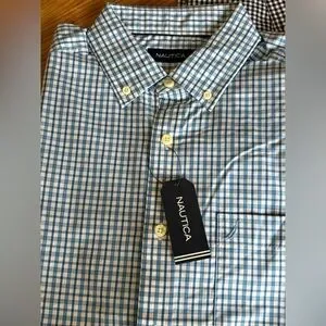 Nautica Men Gingham Shirts Medium Bundle of 2 one short sleeve, one long sleeve