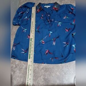 Ranna Gill Anthropology Audubon XS embroidered sequin collar hummingbirds blue