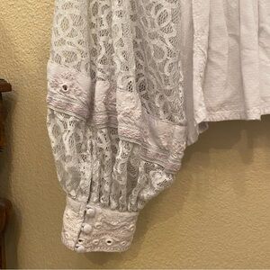 FREE PEOPLE Women Light Blue Boogie All Night Lace Balloon Sleeves Boho Top-S