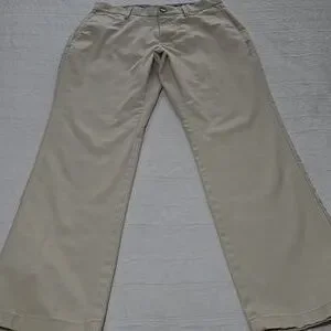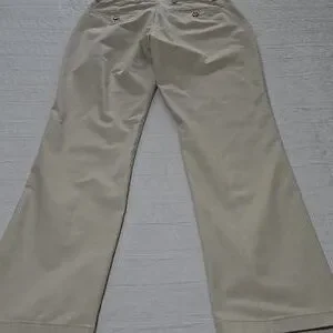 Chino style designed for comfort and movement due to its "Built-In Flex stretch technology". The pants are also described as having a soft, wrinkle-free twill fabric and a straight leg fit.
