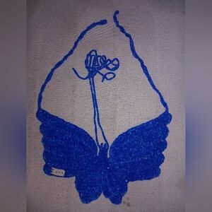 Beautiful blue Y2K crochet butterfly top longest wings length 7in width 9.5in