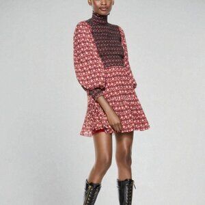 Alice + Olivia Elvira Smocked Mock Neck Mini Dress Size 10
