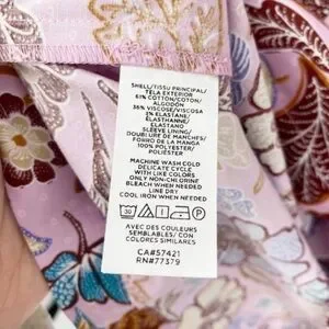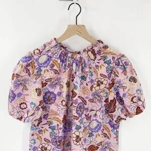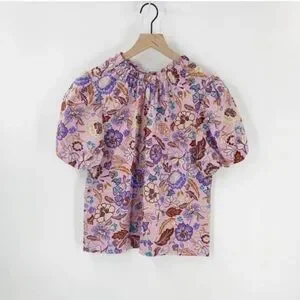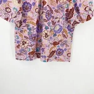 Ann Taylor Purple & Pink Batik Floral Tie Nape Puff Sleeve Blouse