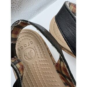 Crocs A-Leigh Black Leather Slingback Cork Wedge Sandals Size W8