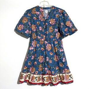 Joie Cotton Baja Floral Puff Sleeve Dress Missing Belt
