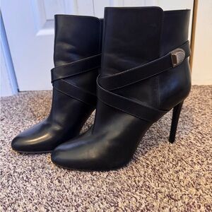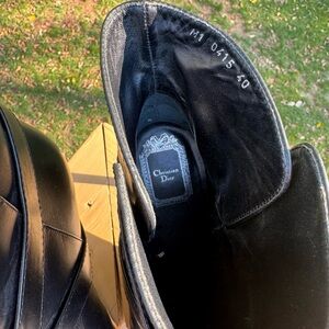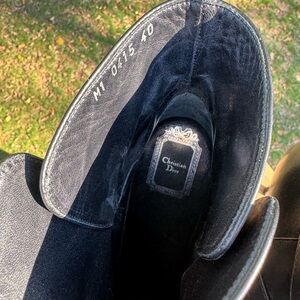 Christian Dior Black Ankle Leather Boots w Silver Buckle Size 40