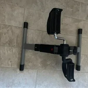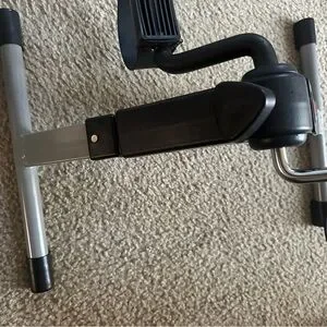 Portable exercise pedal machine in black and gray. Ideal for home workouts.