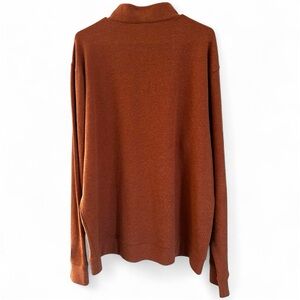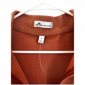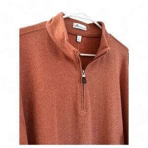 NWOT. Super soft, Lightweight Knit Cotton Blend Quarter Zip Style Pull Over. Color is Autumn Rust which is an orangey brown color. High quality piece from Peter Millar. Leather Tab on Zipper. Cotton/Poly/Rayon Blend. Never worn- no flaws just needed to size down. Men’s size XL