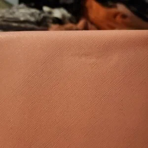 Chic blush pink clutch with gold-tone accents. Perfect for elegant outings.