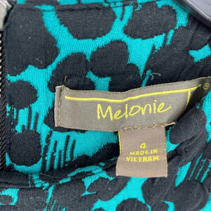 Melonie Dress Women's Sz 4 Green Floral Faux Wrap 3/4 Sleeves Round Neck Stretch