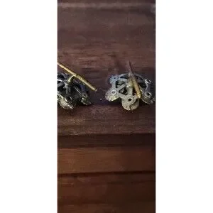 Pair of striking vintage brass screw-back cufflinks featuring ruby-red glass centers set in ornate floral brass mounts. Classic mid-century men’s accessory with elegant detailing — perfect for collectors, vintage fashion lovers, or anyone who appreciates old-school craftsmanship.