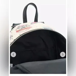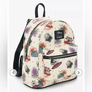 Charming Loungefly backpack and wallet set. Cream base with vibrant character prints.