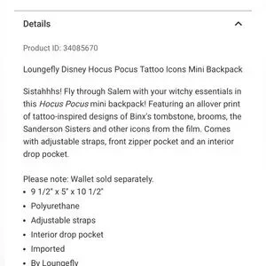 Loungefly Disney Hocus Pocus mini Backpack and Wallet set