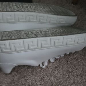 Elegant white leather sneakers with Versace branding. Ideal for everyday style.