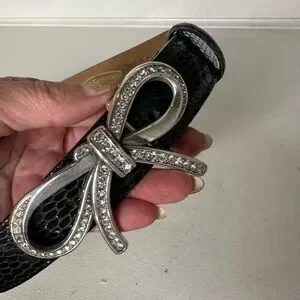 **SOLD**Brighton Black Embossed Leather Belt with Rhinestone Bow Buckle