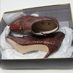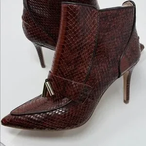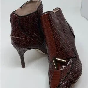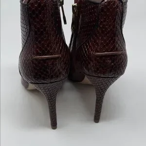 Chic burgundy ankle boots with textured finish. Sleek design with pointed toe. Ideal for stylish outings.