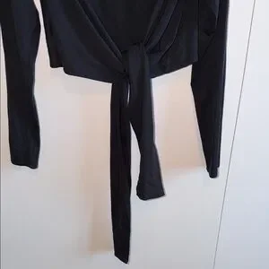 Elegant black long sleeve with stylish tie-front. Perfect for versatile wear.