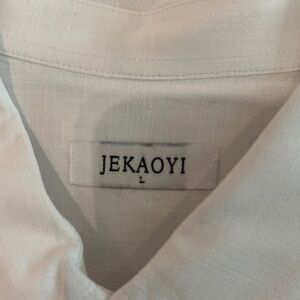 This elegant white dress shirt is perfect for any formal occasion. Crafted for style and comfort, it adds a touch of sophistication to your wardrobe. Linen and cotton blend.